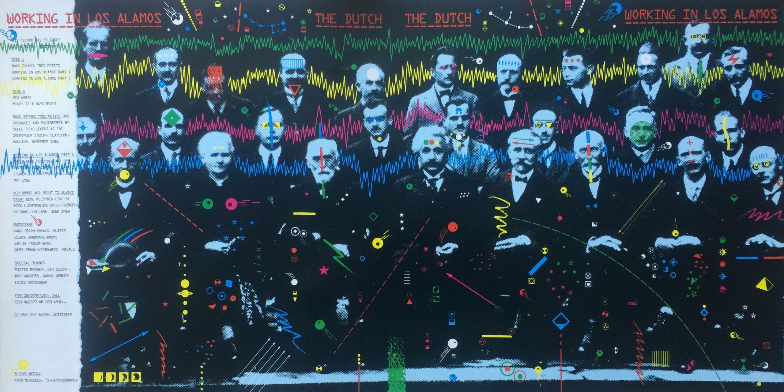Working In Los Alamos is een samenraapsel van tekstueel geëngageerde nummers. Het door Shel Schellekens geproduceerde Nous Sommes Très Petits namen we op in de prijzige Soundpush studio, daarna was het geld op. De andere opnames werden gefinancierd door de toen nog linkse Vara: de twee titelnummers hadden we opgenomen voor het radioprogramma Vara’s Popkrant en twee andere nummers werden live opgenomen voor Vara’s Lijn 3. The Dutch was die dag vanaf een podium in Bergen op Zoom een uur lang live te horen op 3FM, dat toen nog Hilversum 3 heette. Kom daar vandaag de dag nog eens om!